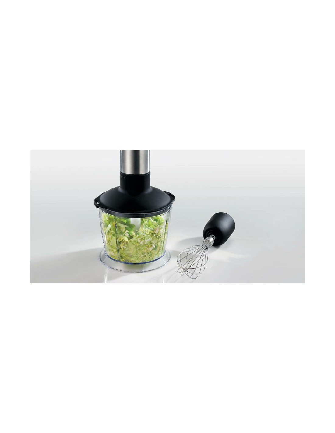 5 lUpravljanjeUključivanje: Uključivanje pritiskom gumbaRegulacija brzine: DaRegulacija brzine pritiskom: NeTurbo gumb za trenutnu dodatnu snagu: NeTrenutno djelovanje:DaIndikator rada: Bijeli indikator rada za potpunu kontroluOsvjetljeni gumbi za bolju uočljivost i jednostavno upravljanje: NeJednostavno pričvršćavanje dodataka: Pričvršećeno šarafomKarakteristikePranje nastavaka u mašini za pranje posuđa za brzo i efikasno čišćenje: NeJednostavno čišćenje: DaJednostavna upotreba: DaMjerna posuda: DaPogodan za pravljenje kaša: DaSigurnostZaštita od pregrijavanja za sigurno djelovanje: NeDodatciNastavci štapnog mikseraMetalni dodatak za sjeckanjeMetlica za tučenjePosuda za miješanjeSjeckalica sa posudomStalakMjerna posuda s poklopcem, pogodna za čuvanje hrane: DaNogice za stabilnostGumirana podloga protiv klizanjaTehnički podaciDužina priključnog kabla: 1300 mmŠirina: 54 mmVisina: 397 mmDubina :65 mmŠirina proizvoda u ambalaži: 326 mmVisina proizvoda u ambalaži: 180 mmDubina proizvoda u ambalaži: 286 mmNeto težina aparata: 0.