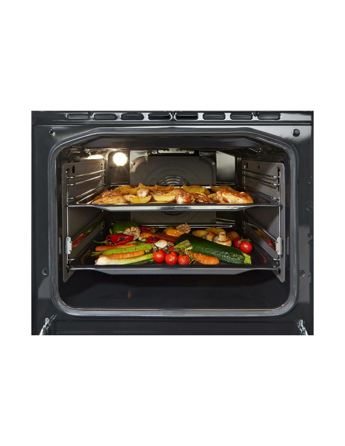 Vodilice posuda za pečenje:Žičane vodiliceKomplet ražnja:NePosude za pečenje:1 duboka emajlirana posuda za pečenje1 plitka emajlirana posuda za pečenjeRešetka pećnice:1 komSonda za meso:NeKriž za nosivu rešetku:NeFilter za masnoću:NeSigurnosni sustavi