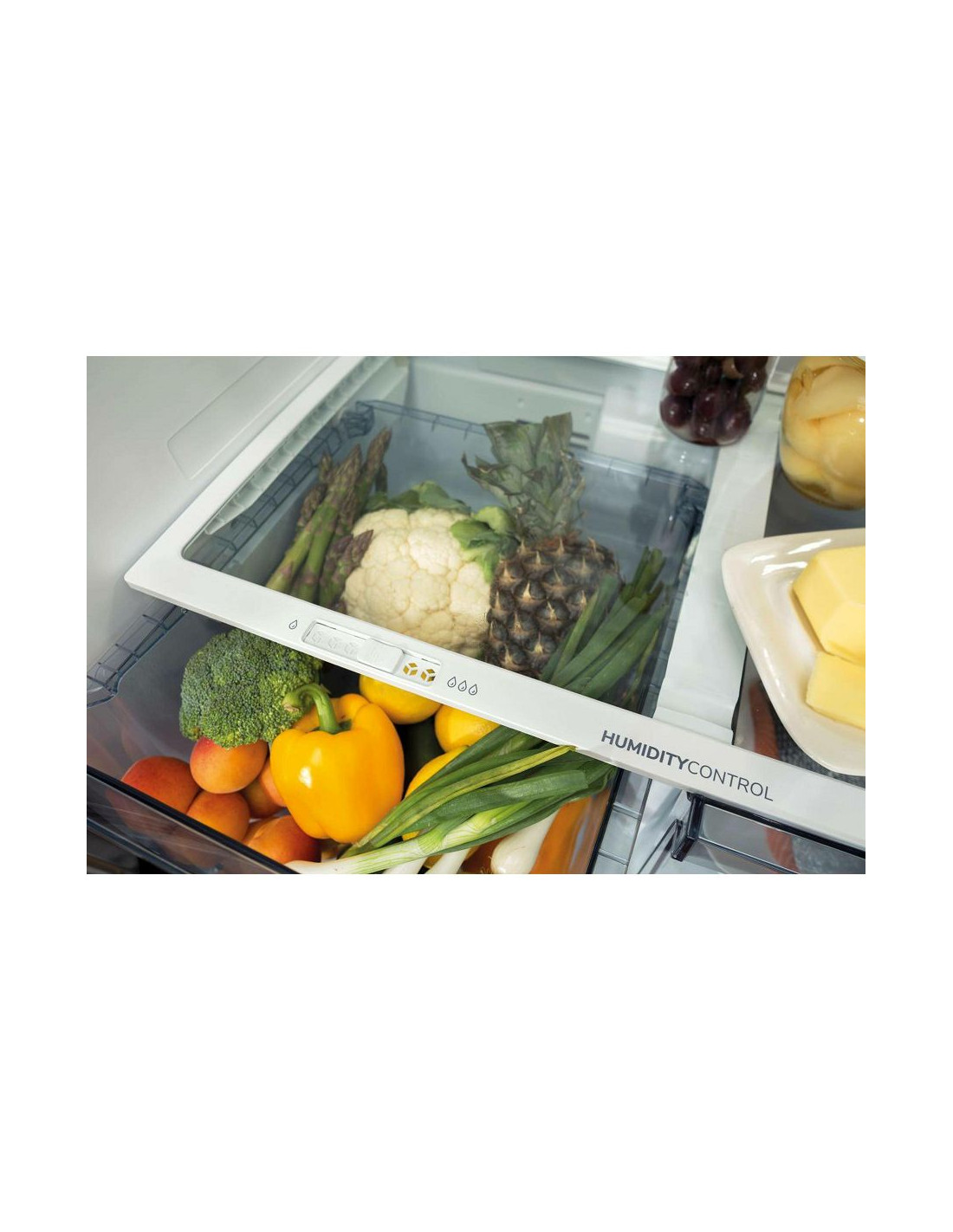 CrispZone s HumidityControl jedan je od prostranijih spremnika za voće i povrće na tržištu, dizajniran da održi svježinu vaših proizvoda kroz nisku temperaturu i opciju podešavanja razine vlažnosti.