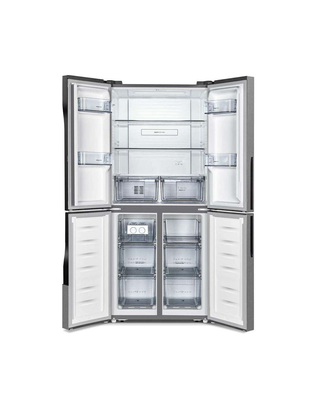 OpćenitoVrsta uređaja:Multi door hladnjakTip konstrukcije:SamostojećaLinija:Advanced LineEnergetski razred:EEnergetski razred buke:DLokacija zamrzivačkog dijela:IspodBoja aparata:SivaBoja vrata:SivaMaterijal vrata:Kolaminirani čelikOtvaranje vrata:OstaloVrsta baze:4 kotačići/2 podesive noge naprijedBroj zvjezdica:Svježa hranaHlađenje4 zvjezdiceKlimatski razredi:SubtropskaTropskaSubnormalnaNormalnaUčinkovitost