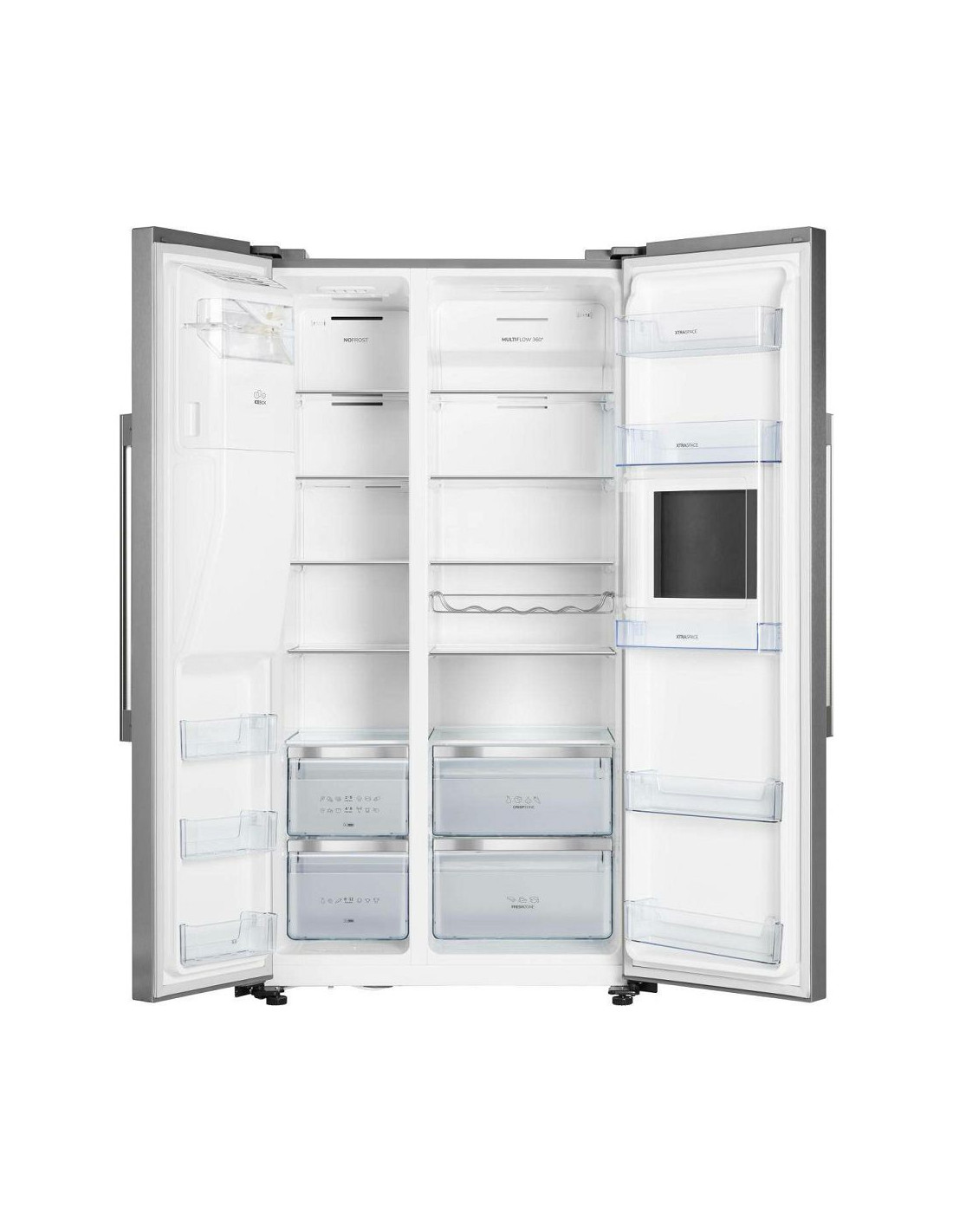 14 kWhUpravljanjeTip zaslona:LED zaslonVrsta upravljanja:Elektronsko na vratimaElektronsko upravljanje SensoTech:DaIndikator za otvorena vrata:Zvučni signalNamjestiva temperatura u zamrzivaču:DaOdleđivanje rashladnog dijela:AutomatskoOdleđivanje zamrzvačkog dijela:AutomatskoKarakteristikeFastFreeze sklopka za brzo zamrzavanje:DaNoFrost:NoFrost PlusKruženje zraka:MultiFlow hlađenje u hladnjakuŠtedljivi program EcoMode:DaOprema rashladnog dijelaDispenzer za hladnu vodu:DaNosač boca:Žičani nosač za boceHomeBar:DaPolice na vratima hladnjaka:5 polica na vratimaPriključak za vodu:Priključak za voduVentilator za hlađenje:DaOsvjetljenje unutrašnjosti rashladnog dijela:LED osvjetljenje na stropuAutomatski ledomat:Automatska izrada ledaKocke ledaDrobljeni ledBroj staklenih polica u rashladnom dijelu:5 komPosudica za jaja:1Podrum (0 zona):FreshZone ladicaOprema zamrzivačkog dijelaPolice u vratima zamrzivačkog dijela:3 komProstor za zamrzavanje:2 ladiceOsvjetljenje zamrzivačkog dijela:LED osvjetljenjeBroj staklenih polica:5 komTehnički podaciRazina buke (max.