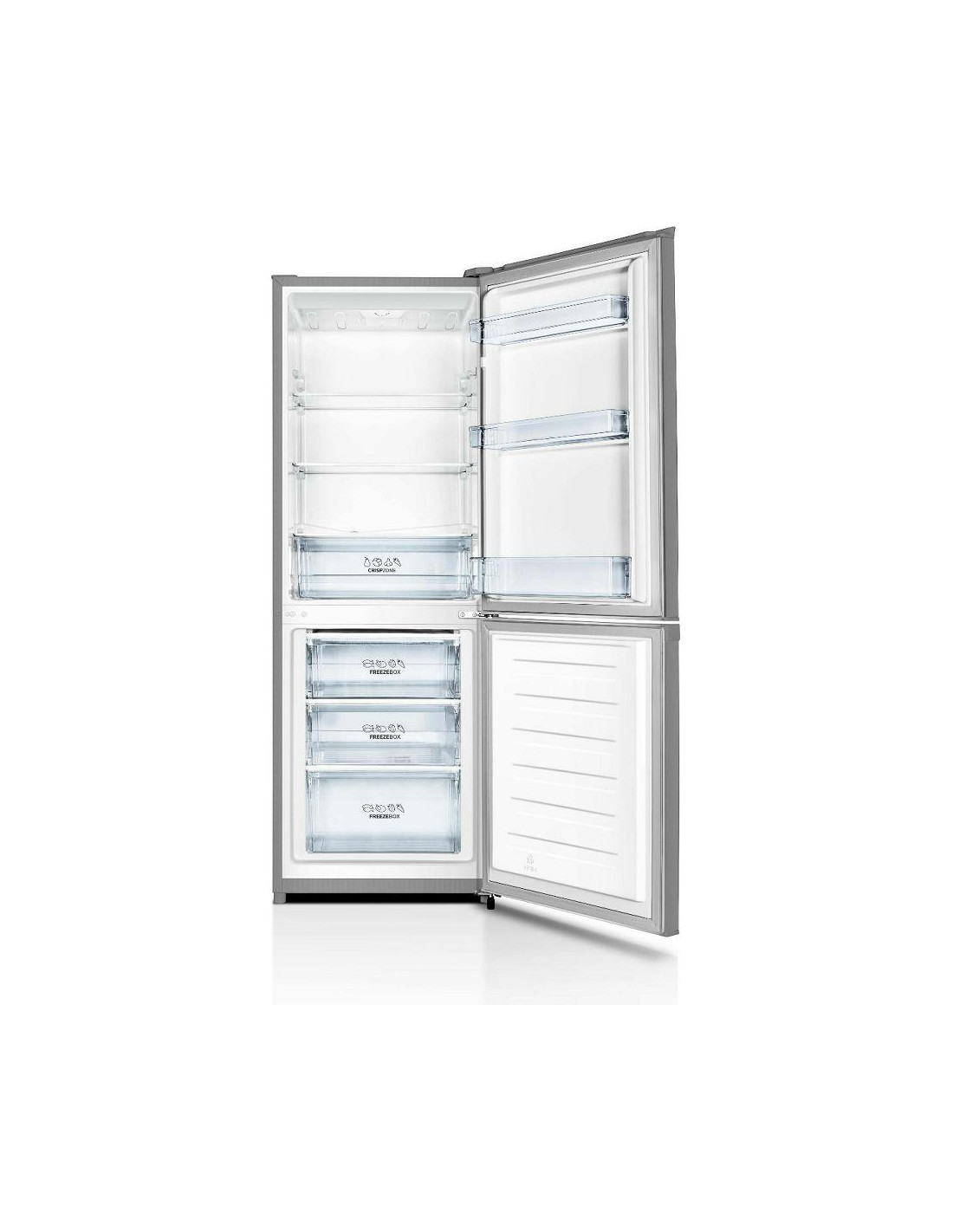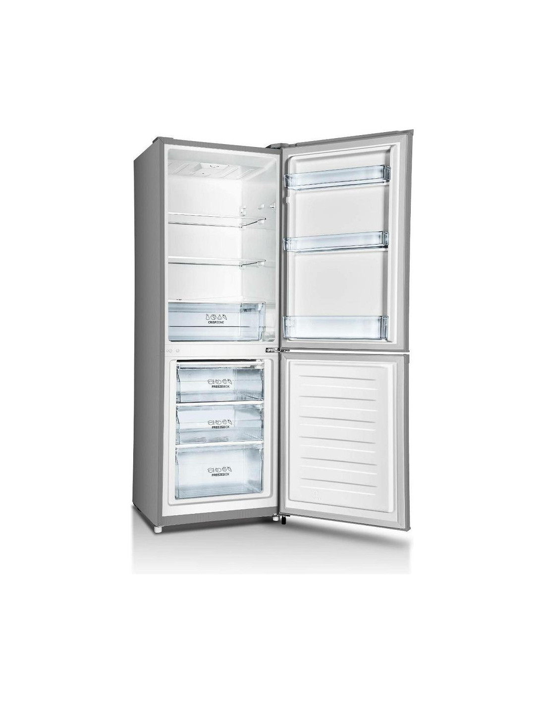 OpćenitoVrsta uređaja:Kombinirani hladnjak/zamrzivačTip konstrukcije:SamostojećaEnergetski razred:EEnergetski razred buke:CLokacija zamrzivačkog dijela:IspodBoja aparata:SivaBoja vrata:SivaMaterijal vrata:LakiranaOtvaranje vrata:Desno promjenjivoBroj vrata:2Vrsta baze:2 kotačića/2 podesive nogeBroj zvjezdica:Svježa hrana4 zvjezdiceKlimatski razredi:NormalnaSubtropskaUčinkovitost