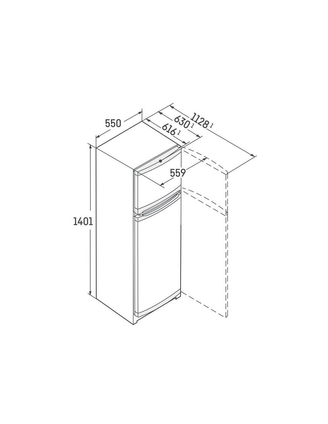 Materijal i boja vrata / kućišta :Bijela boja / Bijela bojaBruto / neto zapremina ukupno (l) :-/233- hladnjak :189,5- zamrzivač :43,8Energetski razred :EGodišnja potrošnja električne energije / 24 h (kWh) :181/0,495Klimatski razred :SN-T (od +10°C do +43°C)Vanjske dimenzije V/Š/D cm :140,1/55/63Bučnost (dB(A)) / Klasa bučnosti :37/CUpravljanje :Mehaničko upravljanjeNapon (V) :220-240Struja (A) :1.