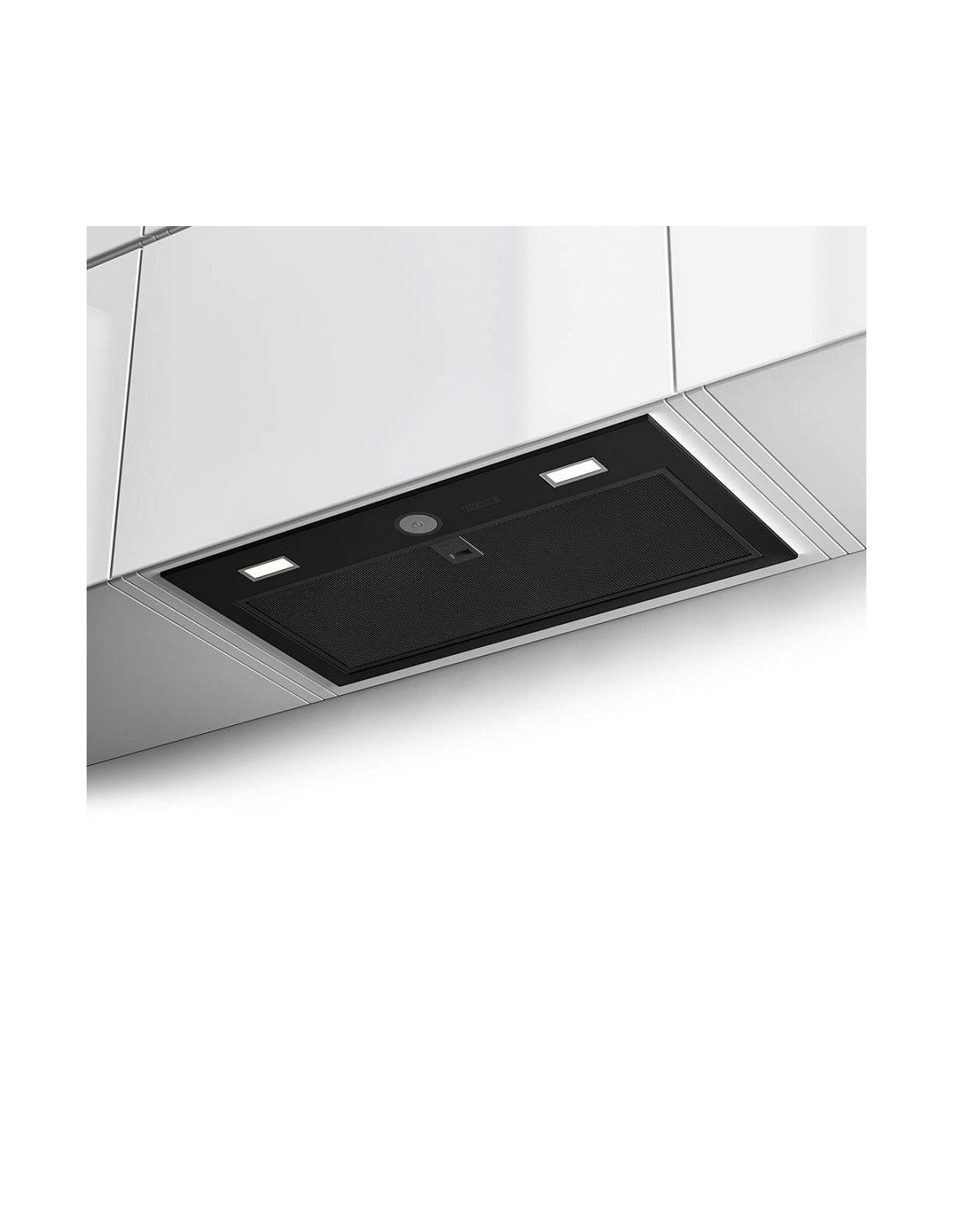 Materijal i boja :CrnaŠirina (mm) :520Energetski razred : BUpravljanje :Uvlačivi gumbRasvjeta: 2 x LEDFilter masnoće :Aluminijski kasetni perivi filteriPromjer odvoda (mm) :150/120Broj brzina :3Kapacitet (m3/h) :230-590Pritisak (Pa) :250-520Snaga (W) :80-160Bučnost (dB(A)) :47-63