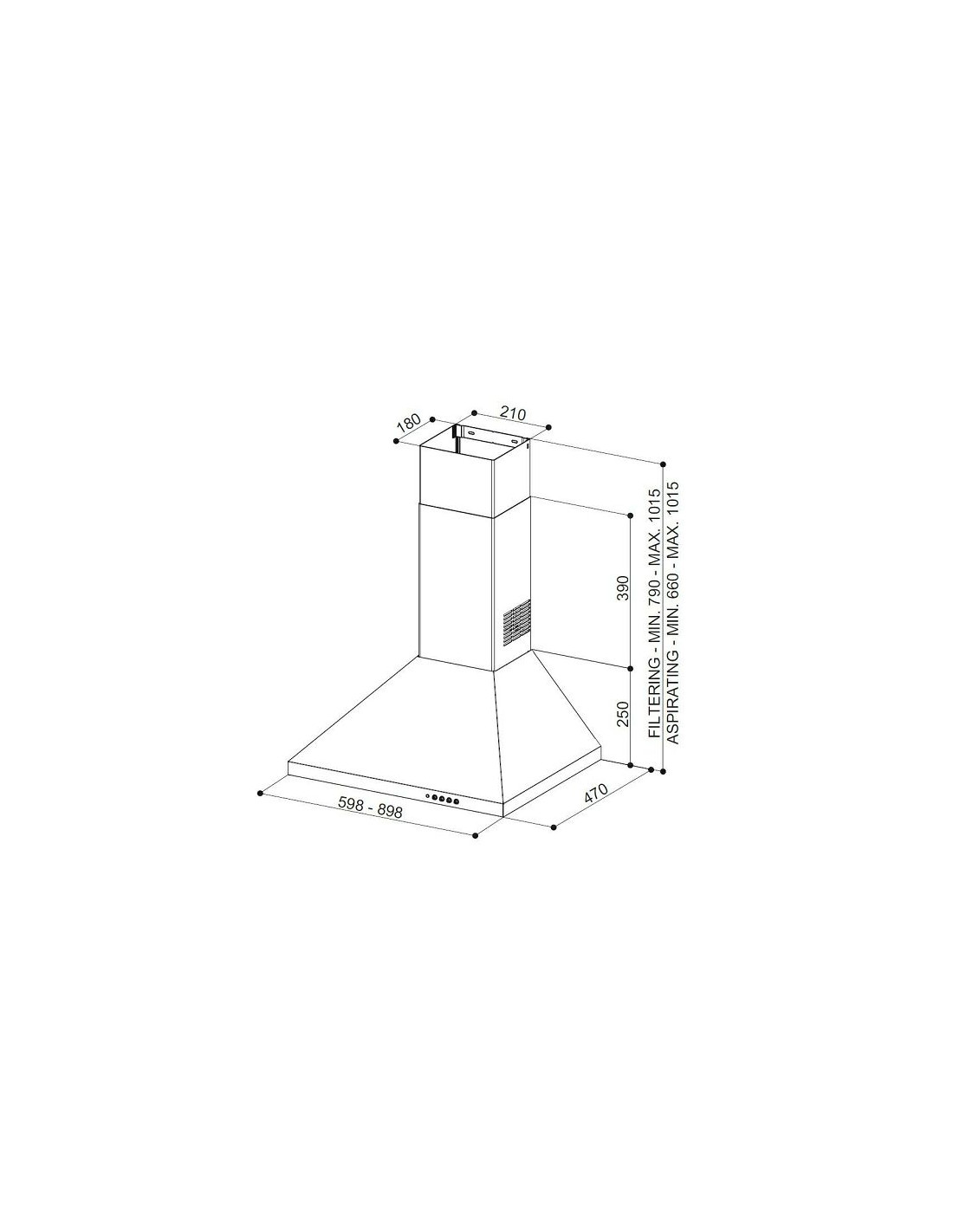 Materijal i boja InoxŠirina (mm) 900Energetski razred BUpravljanje ElektroničkoRasvjeta 2 x LEDFilter masnoće Metalni kasetni perivi filterPromjer odvoda (mm) 150/120Broj brzina 3 + intenzivnaKapacitet (m3/h) 320-740Pritisak (Pa) 330-500Snaga (W) 145-250Bučnost (dB(A)) 53-71