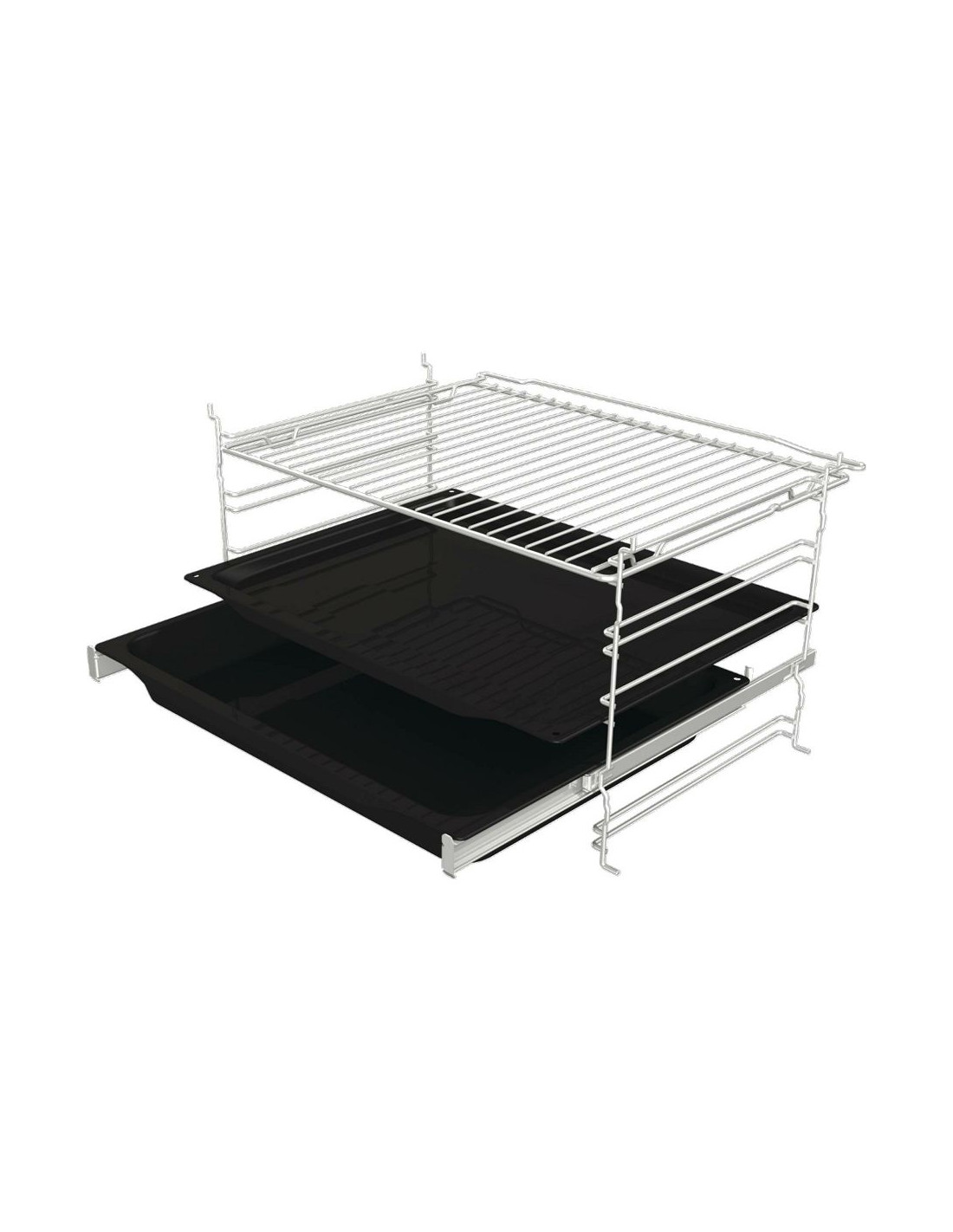 Vodilice posuda za pečenje:1-razinske djelomično izvlačne teleskopske vodilicePosude za pečenje:1 duboka emajlirana posuda za pečenje1 plitka emajlirana posuda za pečenjeRešetka pećnice:1 komSonda za meso:NeSigurnosni sustavi