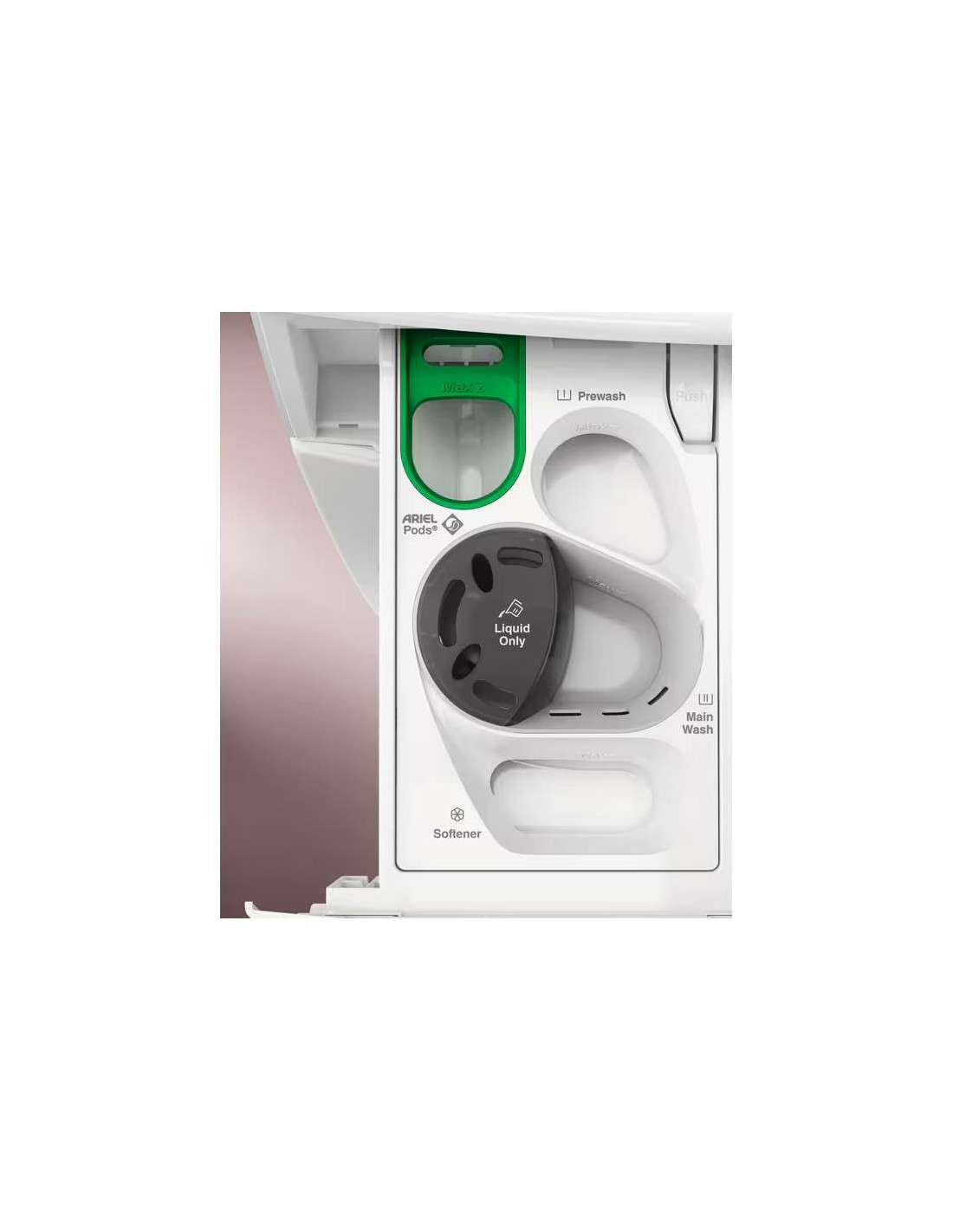 Posuda za detergent lako se otvara i uklanja, a zahvaljujući vrtložnim pokretima vode ostaje čista.