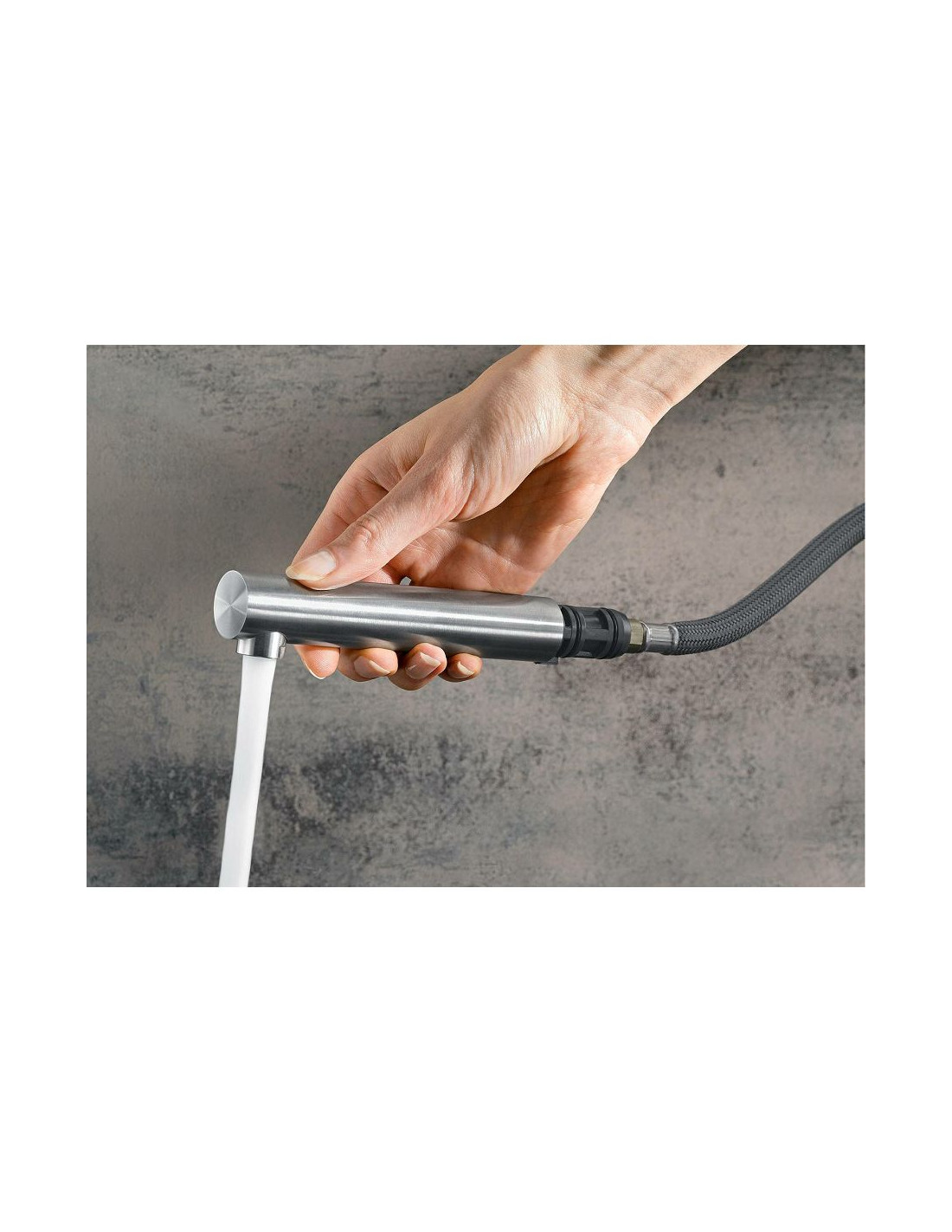 plemeniti čelik masiv precizan dizajn moćne elegancije visokokvalitetan dizajn u masivnom, brušenom plemenitom čeliku čista estetika za moderne kuhinje visoka pipa sa izvlačnim tušem za lagano punjenje lonaca i vaza pipa pomična za 190° – proširuje radni radius štedi energiju: početni položaj ručkice je na hladnoj vodi isporuka za visoki tlakOpis