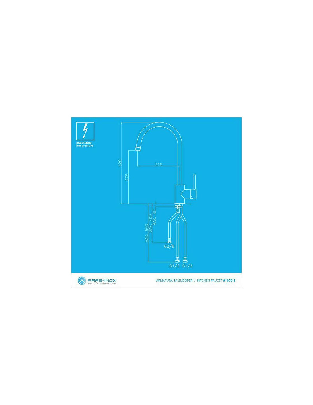 Karakteristike proizvodaJednoručna kuhinjska slavina za niskotlačni bojlerBroj artikla: #1070-3Materijal: Nehrđajući čelikZavršni sloj: Brušeni čelikVisina: 420 mmRaspršavanje vode: PerlatorVertikalna pozicija ručke za ugodno rukovanjePritisak: min.