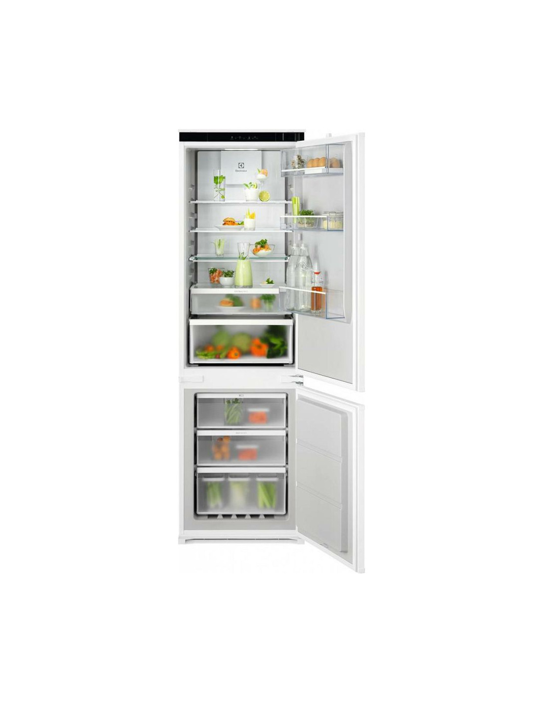 Broj proizvoda (PNC): 925 555 002 Klasa proizvoda: Kombinirani hladnjak sa zamrzivačem u donjem dijelu Boja: bijela Broj termostata: 1 STAR_RATING: 4 Tip upravljačke kontrole: Touch electronic control Vrsta vrata: Ravna Osvjetljenje unutrašnjosti hladnjaka: 1, Luna – 1 top BE_Cold_AutoDefrFreeze: yes BE_Cold_ChildrenSecurity: yes BE_Cold_LED: no BE_Cold_ReversibleDoorH: yes Spremnik za piće: Ne BE_COLD_SBS_IceWaterDisp: no BE_COLD_AEG_LongFresh: no LowFrost: no BE_Cold_DoorOnDoor: no BE_Cold_SlideDoor: yes Odjeljak za mlječne namirnice: 1 Full Width transparent, Lid shelf mounted, With trim Police u vratima: 1, standardna, Prozirne, standardna Broj ladica u zamrzivaču: 3 široke Tip ladica zamrzivača: Frosted Rashladni sustav: R600a