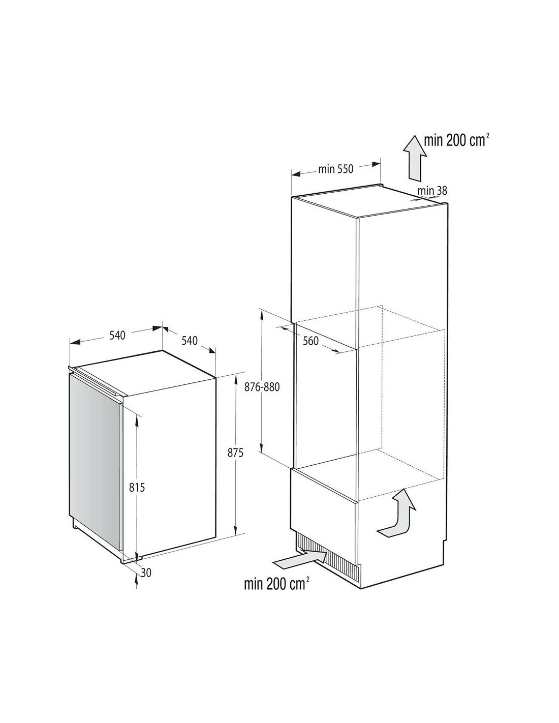 :880 mmVisina veličine niše za ugradnju min.