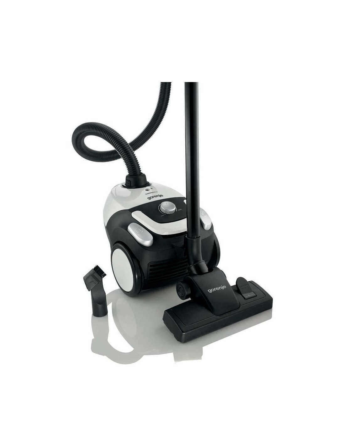 Komercijalno ime: COMPACT XSSnaga usisavanja: 158 WVrsta usisavača:Pohranjivanje prašine - vrećicaBroj nastavaka:2Univerzalna četka:DaProtok zraka:26,3 l/sZapremnina vrećice za prašinu:2 lPromjer cijevi:32 mmDužina cijevi:88 cmMaterijal cijevi:PlastikaBroj filtera:1 HEPA filterLokacija upravljanja:Upravljanje na aparatuNamještanje snage :Upravljanje gumbomSoft Start motor:Soft Start meko paljenje motoraIndikator napunjenosti:Indikator napunjenosti vrećicePapirnate vrećice za prašinu:1Broj priloženih mikrofilter vrećica:1Broj dodatnih nastavaka:2Namatalica priključnog kabela:DaDoseg (kabel, crijevo, cijev):8 mNačin pohranjivanja:Stojeće ili ležećeNastavak za odlaganje cijevi:DaBroj kotača:3Kotači:Kotači obloženi gumom sprječavaju oštećivanje osjetljivog poda kao što je parket i daju stabilnost u radu.