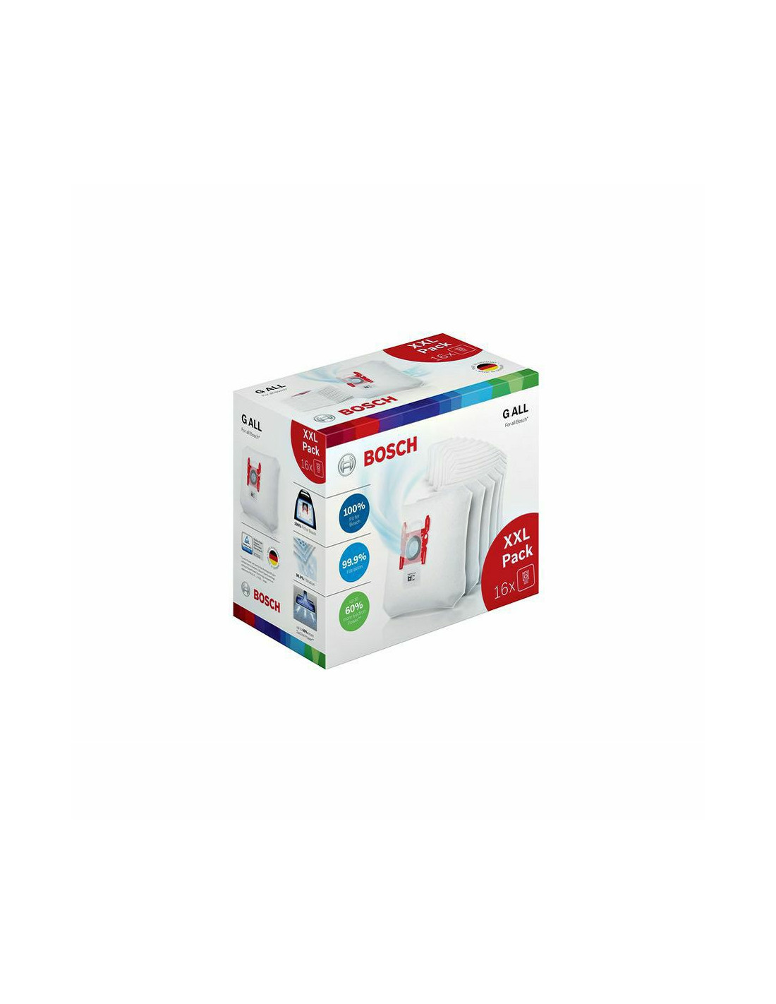 ) Sadrži: 16 vrecica za prašinu *** Moc usisavanja s napola punom vrecicom za prašinu (400 g) u usporedbi sa Siemens / Bosch vrecice za prašinu Tipa G bez PowerProtect Tehnologije, testirano u aparatu BSGL5.